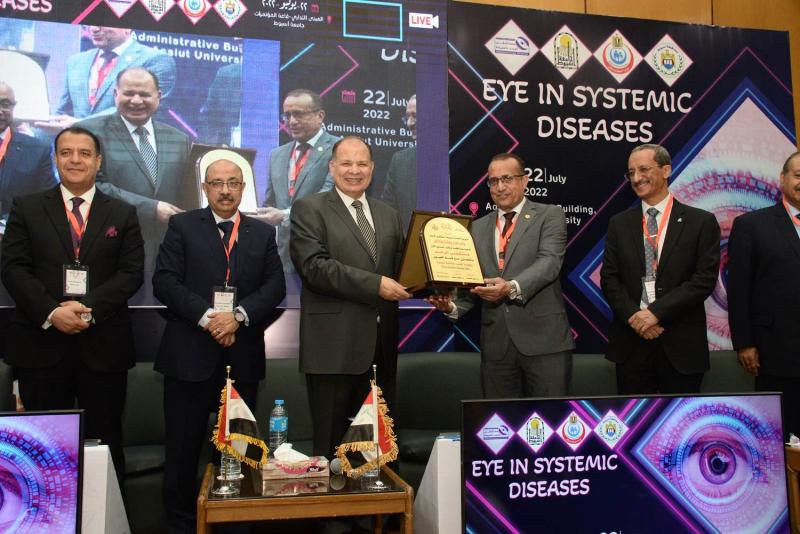 وفي نهاية الجلسة الافتتاحية تم تكريم وتقديم درع للواء عصام سعد محافظ أسيوط وكل من الدكتور شحاتة غريب نائب رئيس الجامعة لشئون التعليم والطلاب والدكتور علاء عطية عميد كلية الطب بجامعة أسيوط والدكتور محمد زين وكيل وزارة الصحة والدكتور محمد سيد سعد رئيس قسم العيون بجامعة أسيوط والدكتور محمد سعد عبدالرحمن رئيس المؤتمر والمشرف العلمي على مستشفى الرمد.
