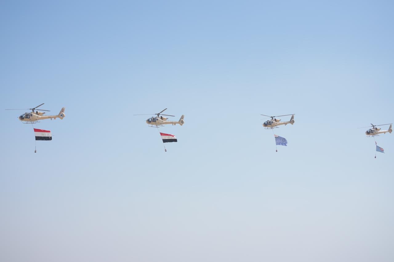 وقد حلقت الطائرات المشاركة، أثناء العرض، في سماء القاهرة الكبرى في عروض جوية مبهرة، حيث شارك في العرض فريق النسور السوداء من كوريا الجنوبية (Black Eagles) بعدد من الطائرات التي نفذت عدداً من العروض الجوية المتميزة بالتزامن مع تقديم فريق النجوم الفضية المصري (Silver Stars) وفريق طائرات الهيل جازيل المصري (حورس) عروضاً جوية مبهرة، وكذا تقديم عناصر من قوات المظلات المصرية عدد من العروض أثناء فعاليات المهرجان.