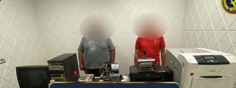 عقب تقنين الإجراءات .. تم إستهدافه وضبطه ، وبمواجهته إعترف بإرتكاب الواقعة على النحو المشار إليه بالإشتراك مع (مالك مطبعة - مقيم بمحافظة الجيزة – له معلومات جنائية) ، وتم بإرشاده ضبط الأخير ، وعثر داخل مسكنه على (4 طابعة متنوعة - ماكينة تغليف - عدد 3 مكبس - جهاز كمبيوتر بمشتملاته - زجاجات أحبار ألوان مختلفة والمستخدمين فى إرتكاب الواقعة) ، وبمواجهته إعترف بإرتكاب الواقعة على النحو المشار إليه بإستخدام الأدوات المضبوطة مقابل تحصله على مبلغ مالى .
