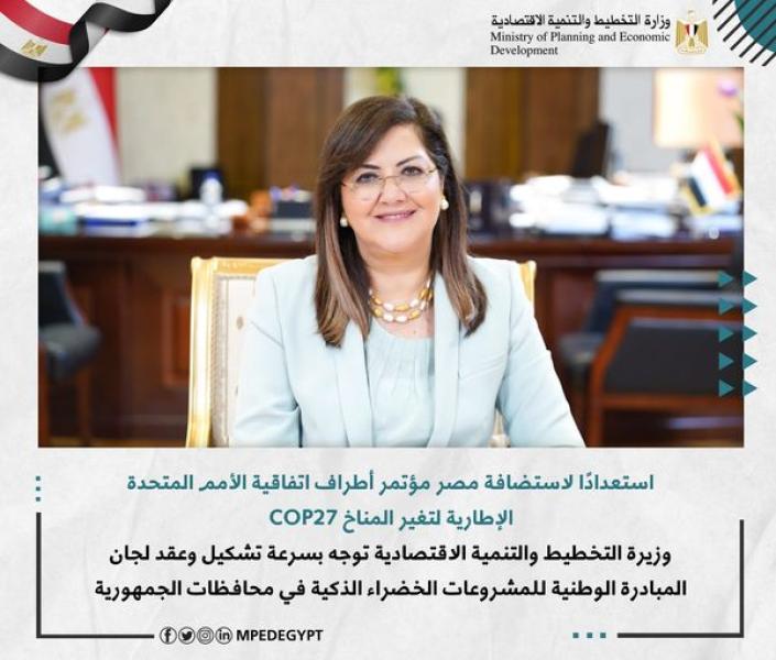 بناء على قرار رئيس مجلس الوزراء رقم 2738 لسنة 2022 بشأن إطلاق مبادرة وطنية للمشروعات الخضراء الذكية في محافظات الجمهورية، وذلك استعدادًا لاستضافة مصر مؤتمر الدول الأطراف في اتفاقية الأمم المتحدة الإطارية لتغير المناخ COP 27؛ بدأت، وزارة التخطيط والتنمية الاقتصادية بالتنسيق مع وزارة البيئة ووزارة التنمية المحليه في تشكيل وعقد لجان المبادرة ومخاطبة كافة محافظات الجمهورية للمشاركة وترشيح المشروعات خلال الأيام القادمة.