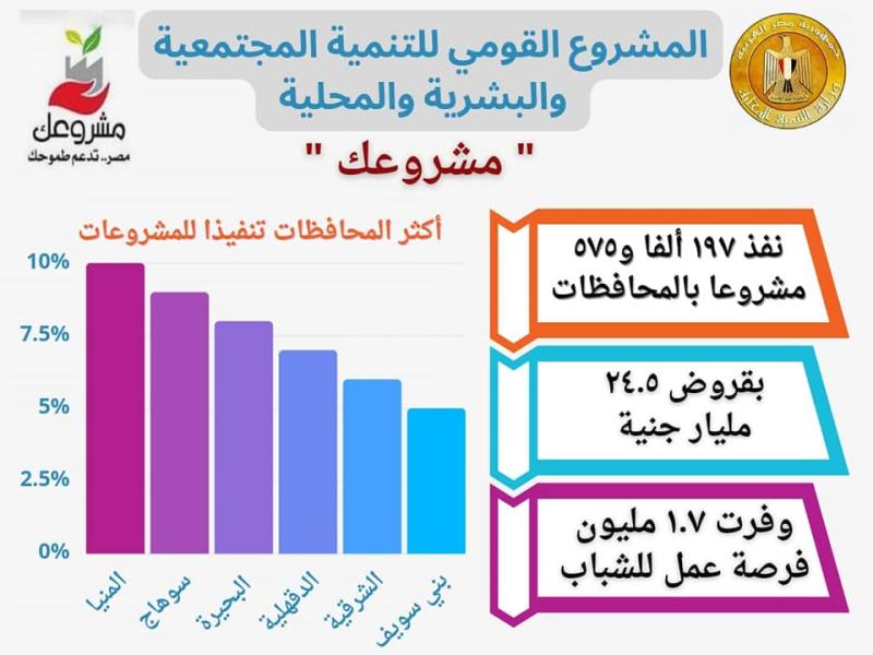 وزارة التنمية المحلية: محافظة المنيا ” الأولي” في تنفيذ مبادرة مشروعك بإجمالي 22 ألف مشروع