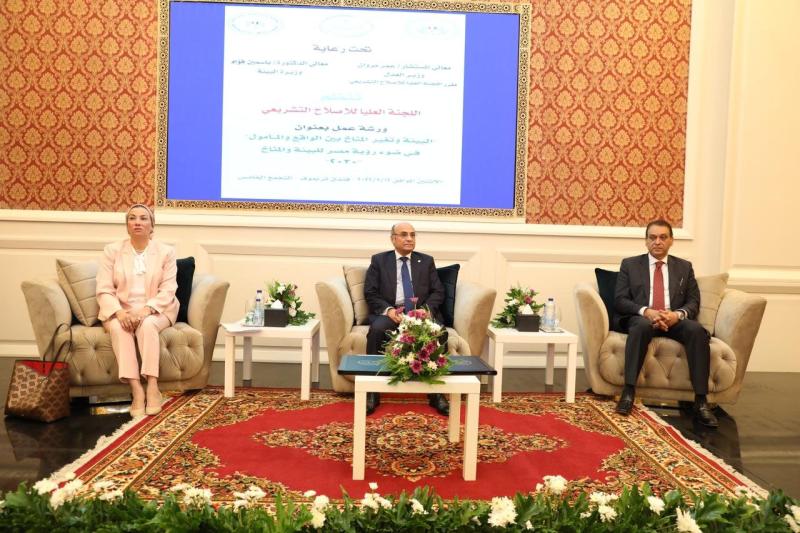 افتتح صباح اليوم الاثنين الموافق 12/9/2022 المستشار/ عمر مروان وزير العدل، والدكتورة/ ياسمين فؤاد وزيرة البيئة، بحضور المستشار/ علاء فؤاد وزير الدولة لشئون المجالس النيابية، فعاليات ورشة عمل "البيئة وتغيير المناخ بين الواقع والمأمول" التي تنظمها اللجنة العُليا للإصلاح التشريعي.