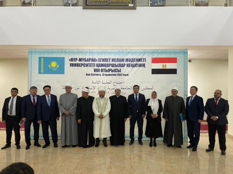 وقد شارك في اجتماع مجلس الأمناء من جمهورية مصر العربية كل من أ.د/ سلامة داود رئيس جامعة الأزهر، وأ.د/ نظير عياد أمين عام مجمع البحوث، وسيادة السفيرة/ منال الشناوي سفيرة مصر بكازاخستان، والقنصل/ محمد شريف قنصل مصر بكازاخستان، ود/ عبد الله حسن مساعد وزير الأوقاف وأ.د/ محمد الشحات الجندي رئيس الجامعة المصرية للثقافة الإسلامية بكازاخستان.