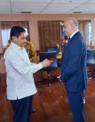 التقى السفير أشرف سُلطان، سفير جمهورية مصر العربية في جاكـــــــرتــــــا، الوزير "ذو الكفل حسن"، وزير التجارة الأندونيسي، بمقر الوزارة. وتضَمَن اللقاء بحث سُبل تطوير علاقات التعاون الاقتصادي بين مصر وأندونيسيا، وتم الإتفاق على تعزيز آليات التواصُل بين القاهرة وجاكرتا لمُتابعة تذليل العقبات أمام تنمية علاقات التعاون الاقتصادي بين الجانبين، سعياً نحو تعزيز حجم التجارة البينية، فضلاً عن عرض عدد من المقترحات لتنمية الاستثمارات والتجارة الثُنائية.