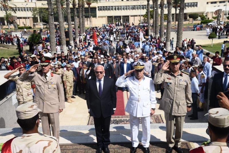 محافظ بورسعيد يضع إكليلا من الزهور على النصب التذكارى احتفالا بنصر أكتوبر