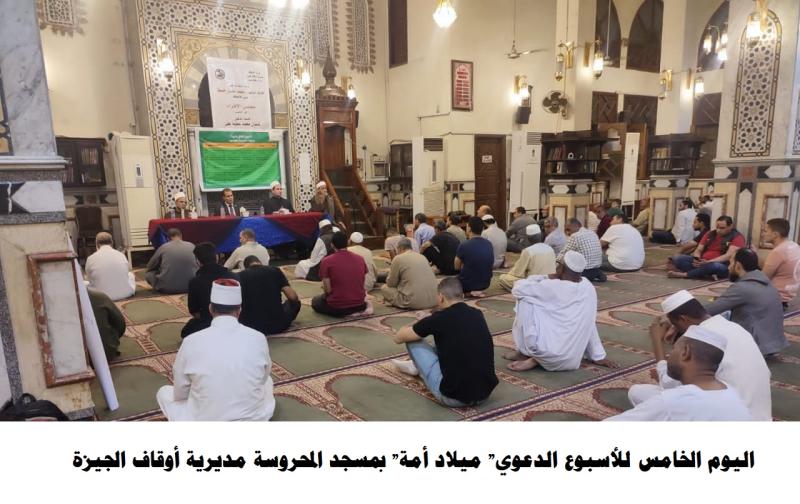 وفي مديرية أوقاف الجيزة أقيم الأسبوع الدعوي بمسجد المحروسة، حاضر فيه أ.د/ خالد عبد العال عميد كلية أصول الدين بالمنوفية، والدكتور/ أحمد أبو طالب مسئول الإرشاد الديني بالمديرية، والقارئ الشيخ/ محمود إبراهيم العطار قارئًا، والمبتهل الشيخ/ عادل عبد الرحمن مبتهلًا.