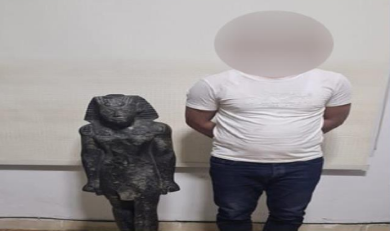 تمكنت الأجهزة الأمنية بقطاع شرطة السياحة والآثار بالتنسيق مع قطاع الأمن العام من ضبط (أحد الأشخاص- مقيم بدائرة مركز شرطة وادى النطرون بمحافظة البحيرة) وبحوزته (تمثال من البازلت "يشتبه فى أثريته" - هاتف محمول).