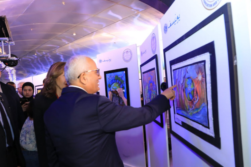 افتتح الدكتور رضا حجازي، وزير التربية والتعليم والتعليم الفني، والدكتورة ياسمين فؤاد، وزيرة البيئة، والدكتورة نيفين الكيلاني، وزيرة الثقافة، ومنظمة الأمم المتحدة للطفولة (يونيسف)، المعرض الفني لطلاب المدارس حول تغير المناخ؛ حيث شارك الطلاب بـ200 لوحة فنية متعلقة بقضية تغير المناخ.