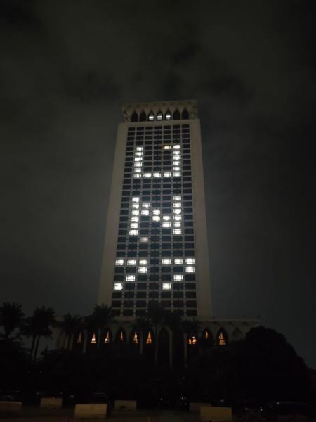 وزارة الخارجية المصرية تتزين بإضاءة مبناها بكلمة UN ورقم 77
