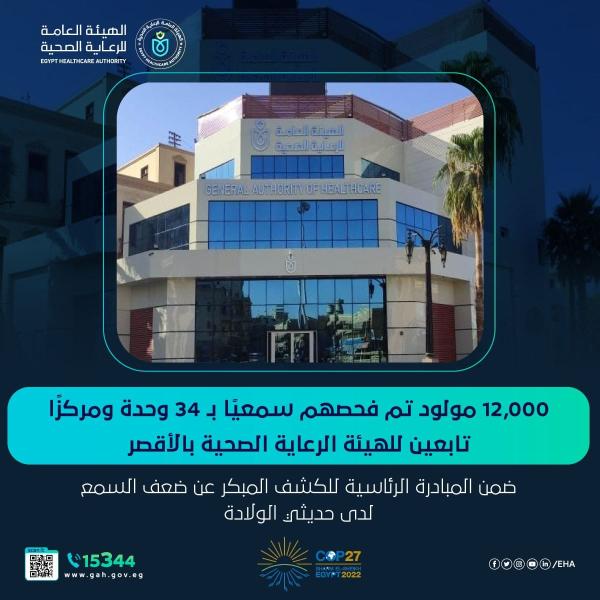 أجرت 34 مركزًا ووحدة لطب الأسرة تابعين لهيئة الرعاية الصحية بالأقصر الفحص السمعي لأكثر من 12.000 مولود، وذلك خلال عام، وضمن مبادرة رئيس الجمهورية للكشف المبكر عن ضعف السمع لدى حديثى الولادة.