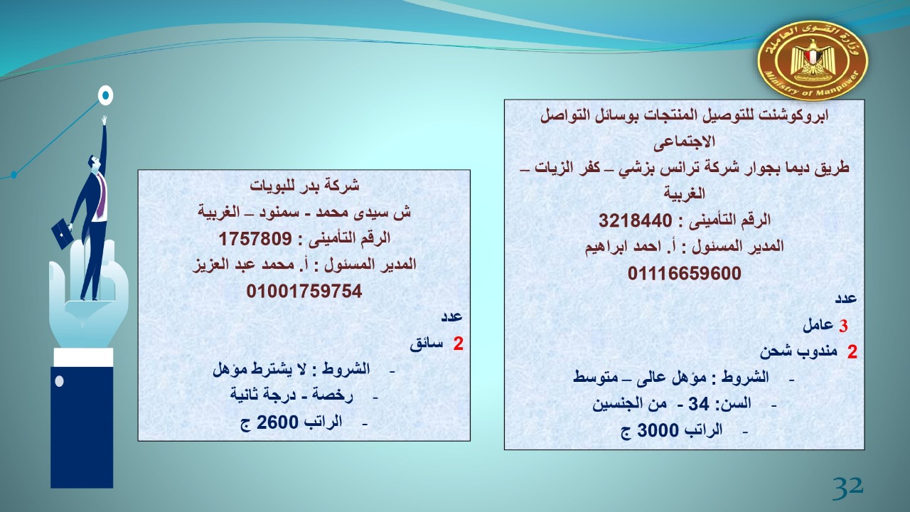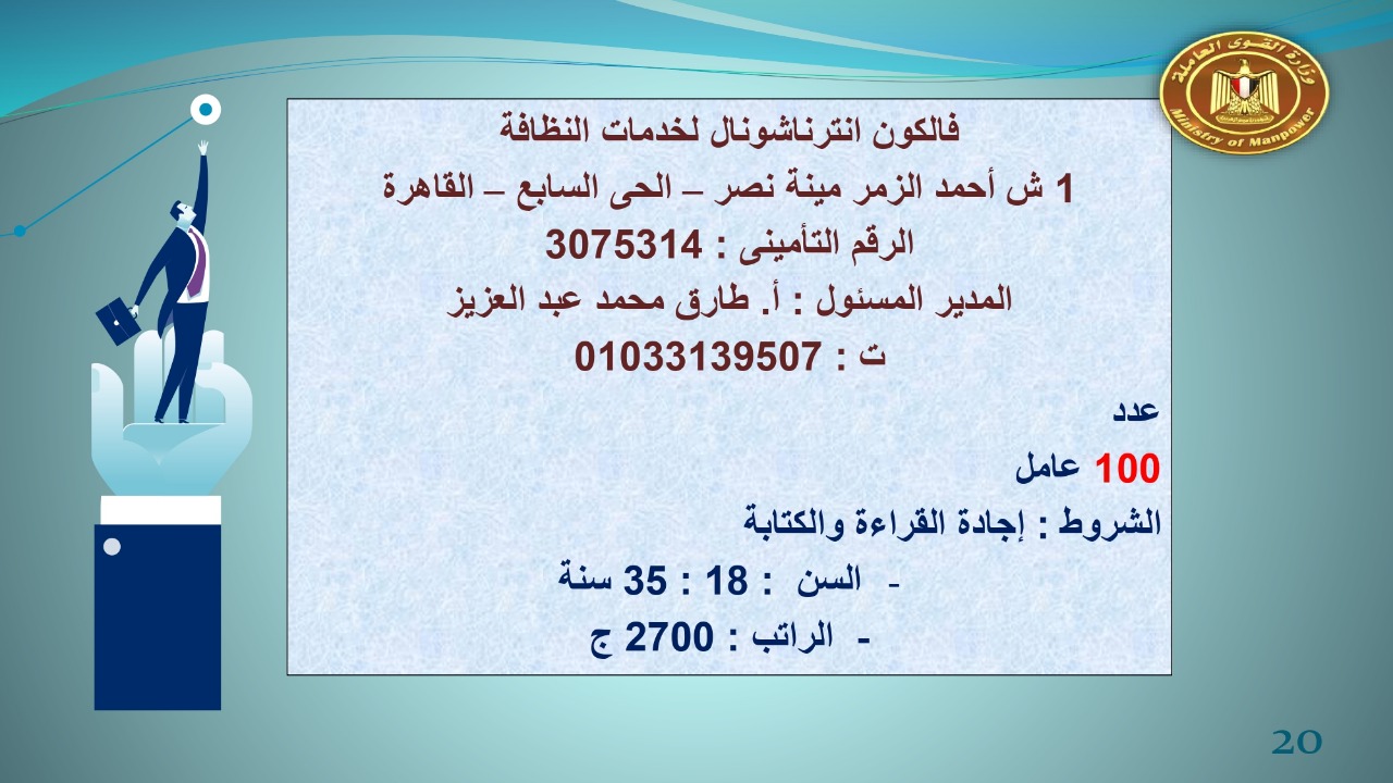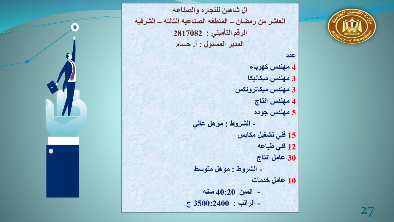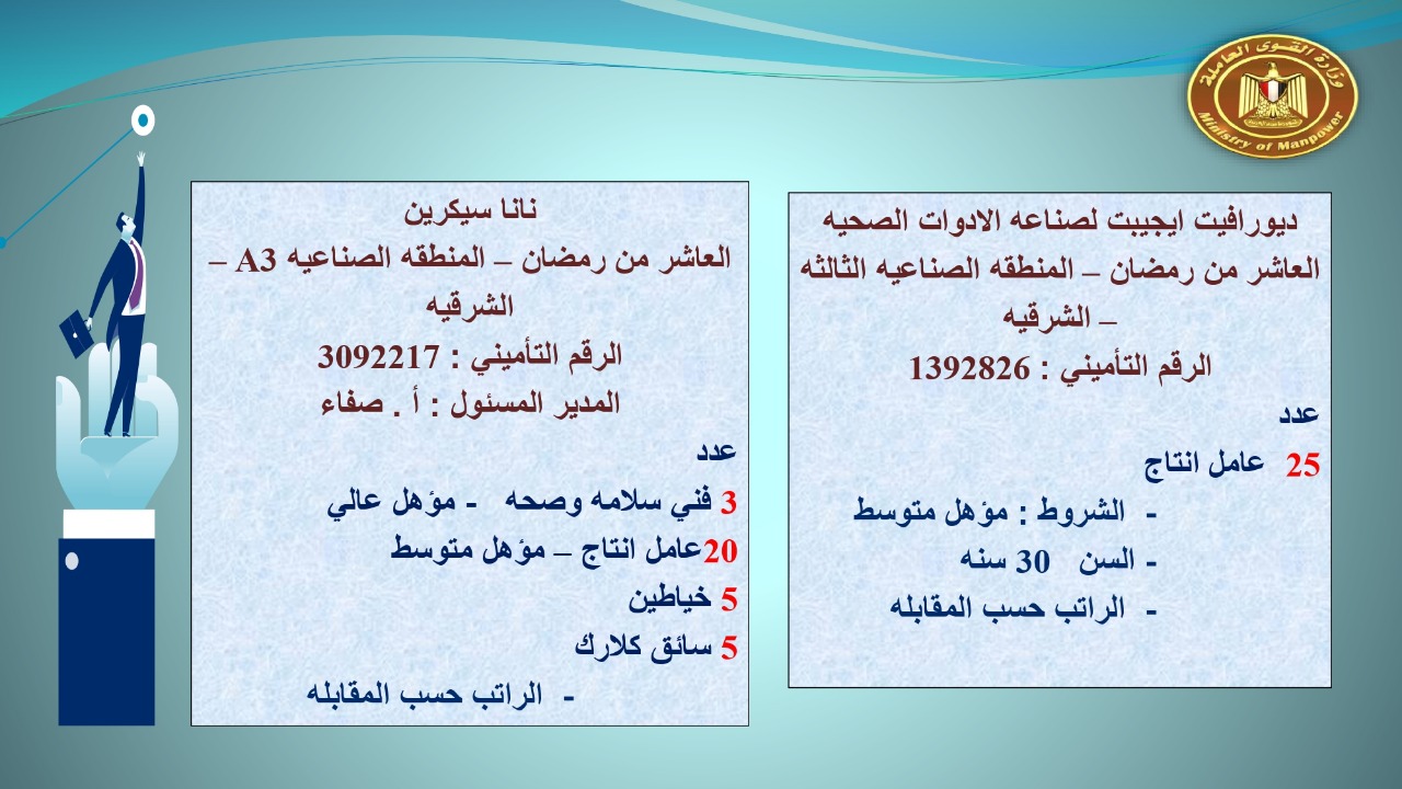القوى العاملة :123 شركة خاصة تعلن عن 7022 فرصة عمل في 14 محافظة
