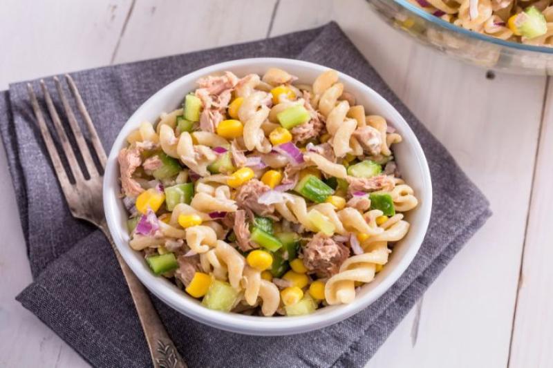 أضيفي المكرونة بعد ذلك لتصبح السلط جاهزة