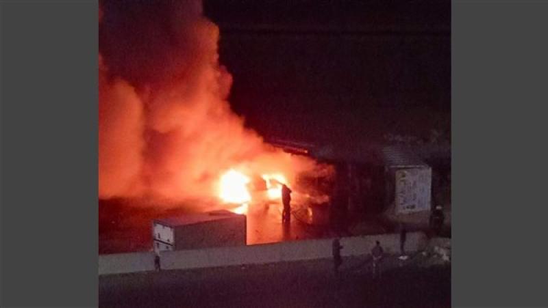 السيطرة على حريق شب في تريلا أعلى الطريق الأوسطي