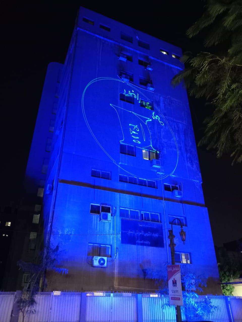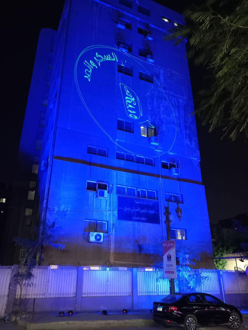 وزارة الصحة تضيء المعهد القومي للسكر باللون الأزرق