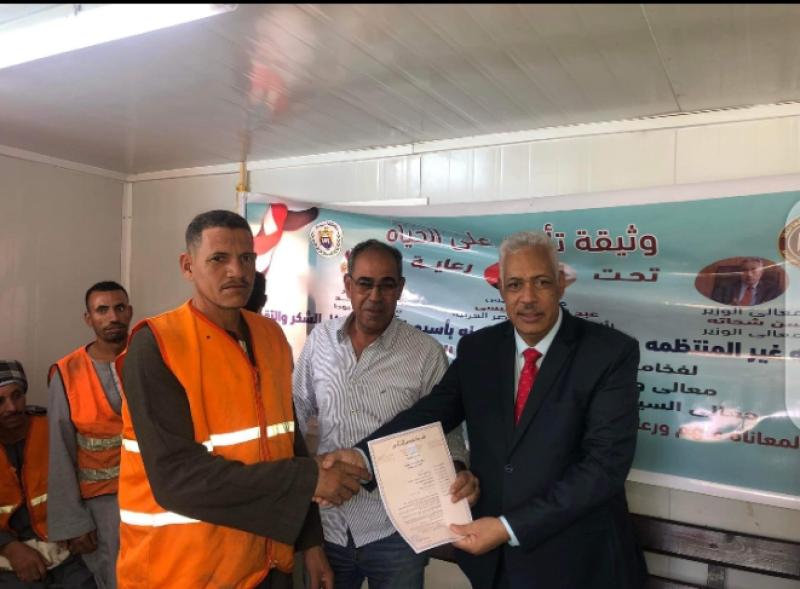 واطمأن مدير المديرية خلال الزيارة على انتظام العمل وعدم وجود أية معوقات تواجه العمال ، وكذلك الاطمئنان على العمالة غير المنتظمة بالقطاع والتي تقدر بـ ١٠٠ عامل، كما تم تسليم وثيقة التأمين ضد الحوادث الشخصية للعمالة المسجلة فضلاً عن شرح الخدمات والرعاية الصحية التي تقدم من المديرية لهم للعمال والشركة .