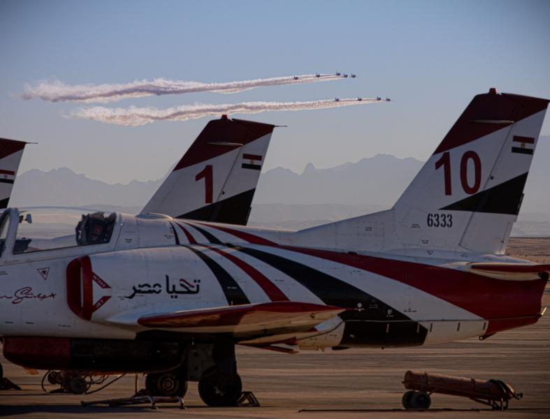 وصل فريق الألعاب الجوية البريطانى (RED ARROWS) إلى إحدى القواعد الجوية المصرية جنوب مصر لمشاركة نظيره من القوات الجوية المصرية تنفيذ العرض الجوى ( (Hurghda Air Show 2022فوق مدينة سهل حشيش فى الثلاثين من نوفمبر الجارى .