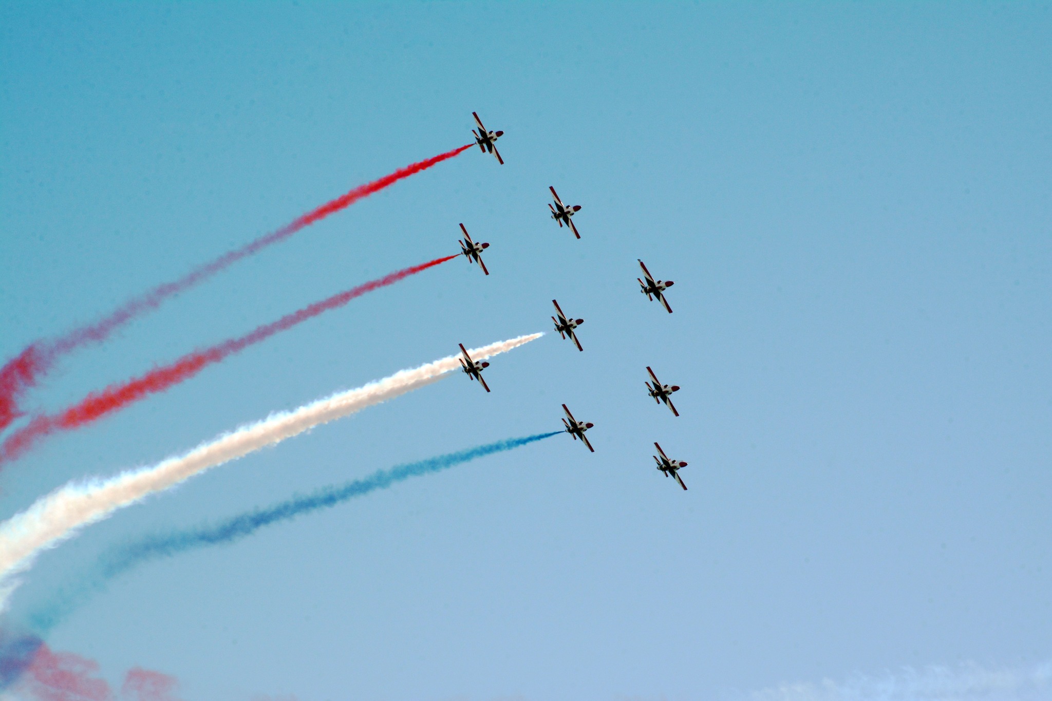 كما إستعرض فريق الألعاب الجوية البريطانى ( السهام الحمراء RED ARROWS) عرضهم الجوى بواسطة طائرات (Hawk) تلاه تنفيذ عروض الملاحة الجوية وتشكيل مجموعة أعلام بواسطة فريق القفز الحر من قوات المظلات المصرية ، وقام فريق القفز الحر من قوات المظلات المصرية بتنفيذ عدد من عروض تشابك المظلات ، كما تم تنفيذ إسقاط مظلى بأعلام الدولتين وشعار العرض فى ختام الفعاليات ، حيث تخللت العروض عدد من اللوحات الفنية التى قدمتها وزارة الثقافة للحضور .