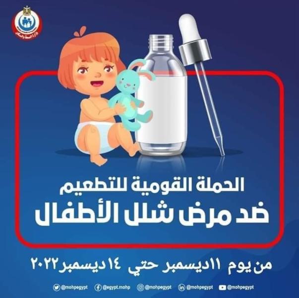 في إطار جهود الدولة المصرية للحفاظ على مصر خالية من مرض شلل الأطفال، أنهت محافظة البحيرة كافة إستعداداتها لتنفيذ الحملة القومية للتطعيم ضد مرض شلل الأطفال والتي ستنطلق الأحد الموافق ٢٠٢٢/١٢/١١ ولمدة ٤ أيام.