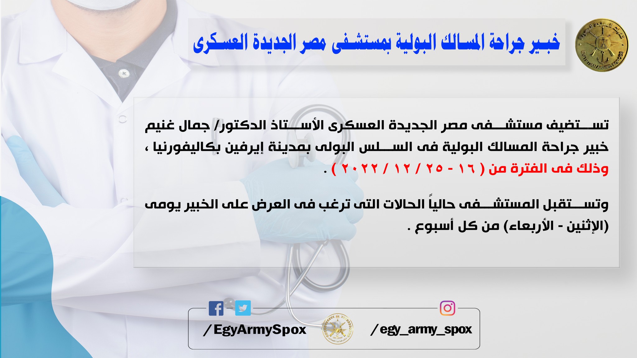 خبير فى جراحة المسالك البولية بمستشفى مصر الجديدة العسكرى