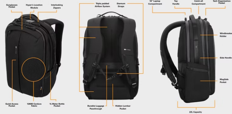 وبدلاً من مجرد أخذ حقيبة ظهر وإضافة وحدة تتبع Find My إليها، سعت شركة "هايبر" إلى تصميم حقيبة ظهر من الصفر، تجذب مستخدمي أبل من خلال الوظائف والحماية والتصميم.