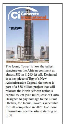 مجلة الخرسانة العالمية الصادرة عن المعهد الأمريكى للخرسانة تنشر تقريرا عن البرج الأيقونى بالعاصمة الإدارية الجديدة