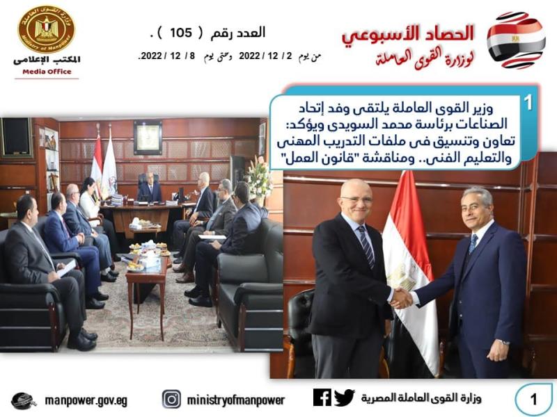 شهدت وزارة القوى العاملة خلال هذا الأسبوع نشاطا ملحوظا،فيما يخص دورها المحوري والجوهري كوزارة خدمية هدفها تقديم أفضل خدمة للمواطن ،في الداخل والخارج ،فيما يخص مجال عملها ..حصاد أسبوعي مليئ بالاحداث والترتيبات والتنسيق مع شركاء اجتماعيين من اتحاد الصناعات ،واتحاد مقاولي البناء والتشييد ومنظمة العمل الدولية...جرعة توعوية جديدة في تقرير تفصيلي عن وحدات التدريب المهني الثابتة والمتنقلة في كافة المحافظات، نشرته معظم وسائل الإعلام..توجيهات مباشرة وحازمة إلى جميع المديريات لتنظيم حملات تفتيش للتأكد من التزام الشركات بتعيين نسبة ال5 ٪ من ذوي الاحتياجات الخاصة ..لقاءات مع الجانب السعودي وشركات إلحاق عمالة في الخارج لتنظيم موسم عمالة الحج والعمرة بما يضمن حقوق الجميع ،مع التأكيد على أنه لا تهاون مع المخالفين ..نشاط مكثف أيضا لمكاتب التمثيل العمالي في الخارج في عودة مستحقات عمالة مصرية ..نفس النشاط مع مديريات القوى العاملة في كافة المحافظات التي تواصل دوراتها التدريبية والتوعوية في القري والمدن الأكثر احتياجا للتدريب والتوعية ..إلى التفاصيل