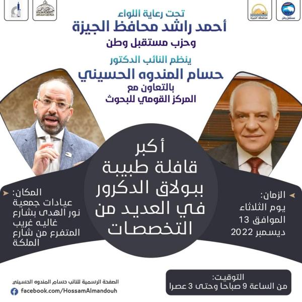 اعلن عن اكبر قافله طبيه في محافظه الجيزه ببولاق الدكرور بالتعاون مع المركز القومي للبحوث