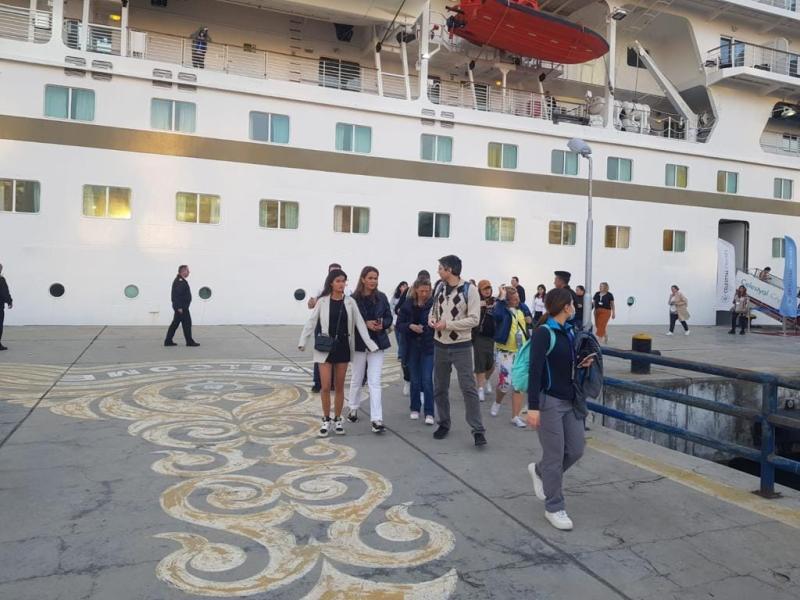 وعلى متنها 1070راكب من بينهم 663سائح و407 طاقم السفينة، من مختلف جنسيات العالم وذلك ضمن برنامج جولاتها الرابع خلال الموسم الشتوى الحالى ،قادمة من ميناء بيريوس باليونان،ومن المقرر أن يغادر الركاب السفينة متجهين إلى مدينة القاهرة للقيام برحلات سريعة لزيارة معالم المدينة الأثرية والسياحية وزيارة المتحف المصري،ومن المنتظر ان تغادر السفينة الميناء بعد عودة السياح الأجانب من جولتهم بمدينة القاهرة.