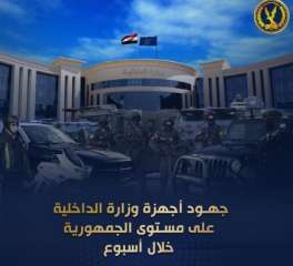 واصلت أجهزة وزارة الداخلية على مستوى الجمهورية توجيه الحملات الأمنية بالتنسيق مع قطاع الأمن المركزى، حيث أسفرت جهود أجهزة وزارة الداخلية خلال أسبوع، عن تحقيق النتائج الإيجابية التالية: