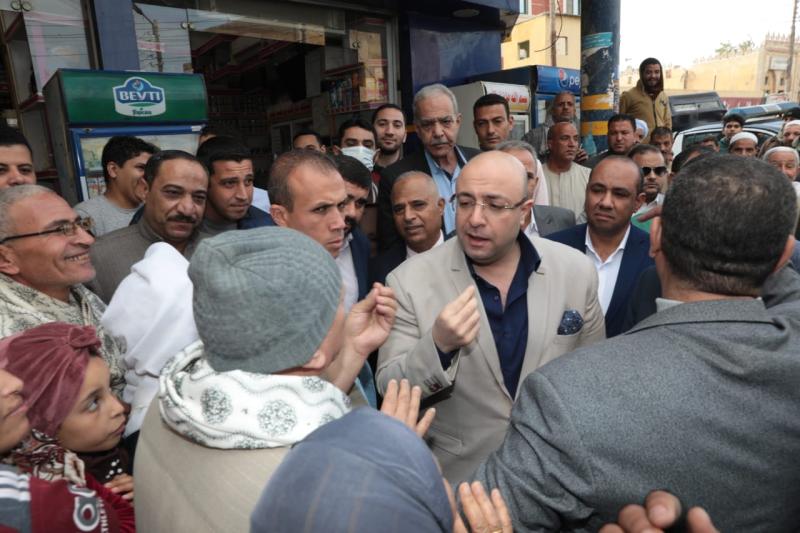 محافظ بني سويف يستمع للمواطنين خلال جولته على عدد من المحلات التجارية بمركز الواسطى