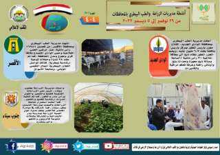 فيما أعلنت مديرية الطب البيطري بمحافظة الأقصر، الانتهاء من تحصين 42 الف و 577 رأس ماشية، فضلا عن استمرار متابعة الاسواق، وتنفيذ أعمال التقصي الوبائي النشط، فضلا عن عقد الندوات الإرشادية للمربيين،كذلك انتهت مديرية الزراعة بمحافظة البحر الأحمر، مم جمع الخضروات المنزرعة بالصوب الزراعية بالإدارة الزراعية بالغردقة، كما انتهت مديرية الطب البيطري بمحافظة شمال سيناء، من تحصين 59 ألف و770 رأس ماشية، فضلا عن اطلاق 3 قوافل بيطرية علاجية مجانية.