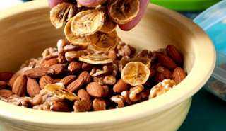 ولا بد من تناول المكسرات النيئة، في الوجبة الخفيفة، على ألا يتجاوز الكم المستهلك منها قبضة اليد أي نحو الثلاثين غراماً، والمقسّمة وفق الآتي: 8 حبات من الجوز، أو 20 حبة من اللوز، أو 30 حبة من الفستق، أو 9 حبات من البندق، أو 15 حبة من الكاجو، أو 28 حبة من الفول السوداني، أو ملعقتان كبيرتان من الصنوبر.