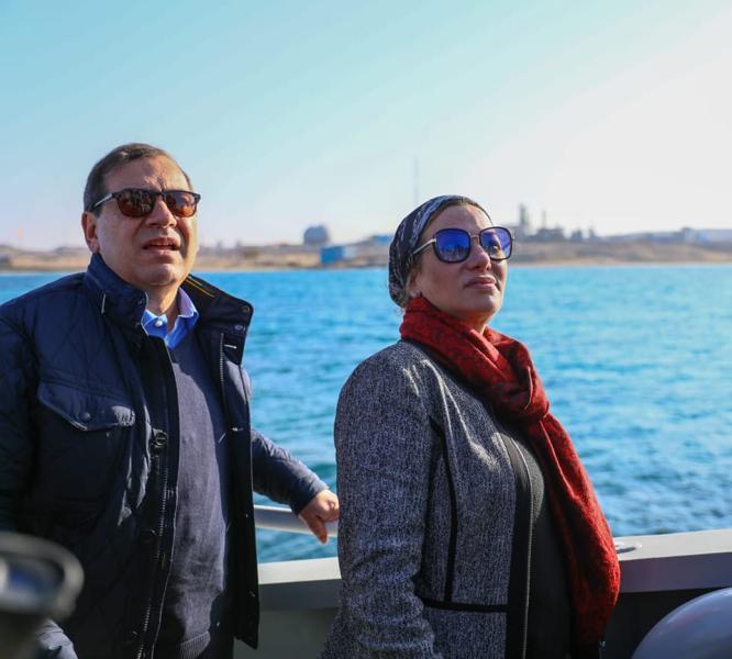 وفي ختام اليوم، قام وزيرا البيئة والبترول برحلة بحرية ميدانية لمنطقة خليج السويس ، لمتابعة الوضع البيئي بها، حيث أكدت وزيرة البيئة خلال الرحلة أنه يتم رصد وضع الشعاب المرجانية بالاقمار الصناعية من حيث الشكل واللون، وأن ما تم رصد من خلال الكاميرات أثناء الرحلة البحرية يوضح حجم التعافي المحقق للشعاب المرجانية بالمنطقة، وهذا دليل آخر على قدرة شعاب البحر الأحمر على الصمود أمام تحدي تغير المناخ والتلوث وقدرتها على التعافي والتكاثر السريع حال مساعدتها على ذلك، كما يتم دراسة التباين في لون المياه المرصود من خلال الأقمار الصناعية في إطار عدد من العوامل ومنها حجم الاختلاف في لون المياه بنفس المنطقة على مدى زمني كبير والأعمال التي تنفذ في هذه المنطقة ومدى تأثيرها، بحيث يوضح لنا أي اختلاف يطرأ نتيجة لتلوث ما والتعامل معه.