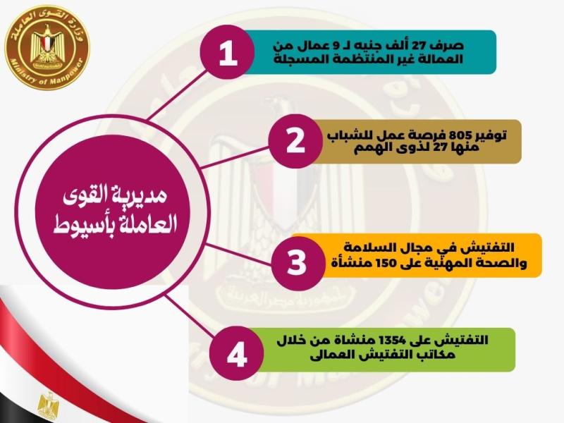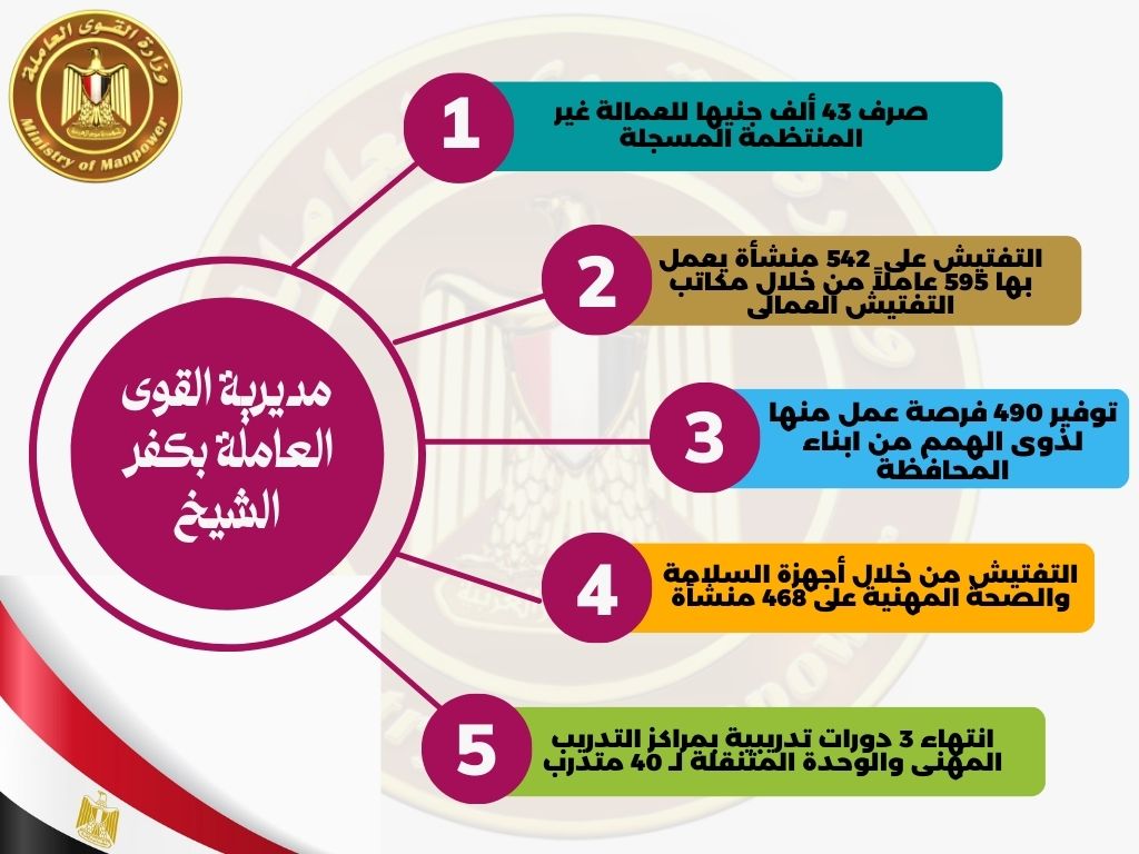 بالإنفوجراف..خدمات قدمتها مديريات قوى عاملة كفر الشيخ و أسيوط وبورسعيد في ديسمبر