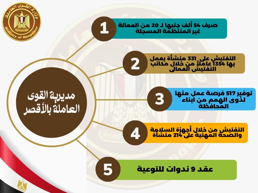 بالإنفوجراف .. خدمات قدمتها مديريات قوى عاملة الأقصر وجنوب سيناء والمنوفية خلال ديسمبر