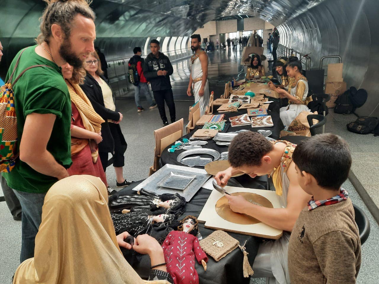 ومن جانبها قالت الاستاذة نانسى عمار أخصائي تراث أول وتواصل حضارى أن الفعالية تضمنت مجموعة من الورش الحية التفاعلية، منها ورشة الطرق على النحاس، وورش المنسج والتللى والكروشيه والخيامية، وورشة التطريز بأيدى سيدات وطلاب مدرسة الجمعية وهي الورش التي تبرز الفنون والحرف التراثية المصرية، بالإضافة إلى تقديم عرض استعراضي لفرقة الاستعراض الفرعونى سرك تواصل، والتى قامت بها تلاميذ جمعية تواصل، حيث نالت إعجاب جميع زوار المتحف.