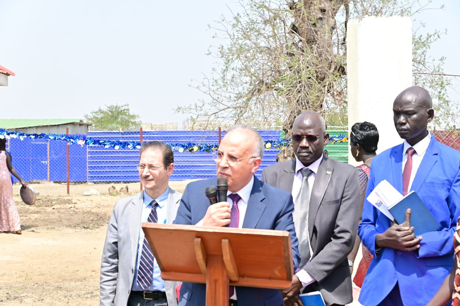 وفى كلمته بالإحتفالية .. أعرب الدكتور سويلم عن سعادته بالتواجد وسط أهالي دولة جنوب السودان الشقيقة والإحتفال معهم بإنطلاق المياه من محطة مياه الشرب المهداه من الشعب المصري للشعب الجنوب سودانى الشقيق ، والتي تحمل الخير والتنمية للمواطنين بالمنطقة حيث تخدم ما يقرب من ٢٠٠٠ نسمة ، معرباً عن سعادته الشخصية برؤية تأثير المحطة على المواطنين .