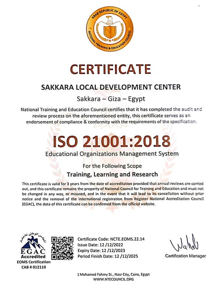 وزير التنمية المحلية يعلن حصول مركز التنمية المحلية بسقارة على شهادة الأيزو ISO 21001:2018