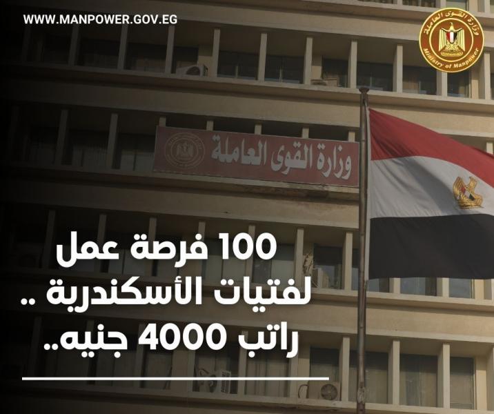 القوى العاملة تٌعلن عن 100 فرصة عمل لفتيات الأسكندرية براتب 4000 جنيه