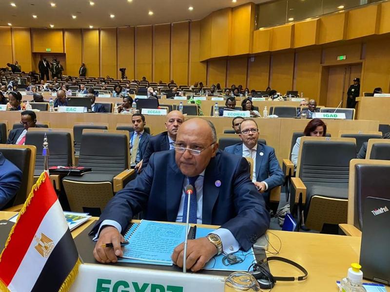 وزير الخارجية يلقى كلمة مصر حول البند الخاص بتقرير أنشطة مجلس السلم والأمن