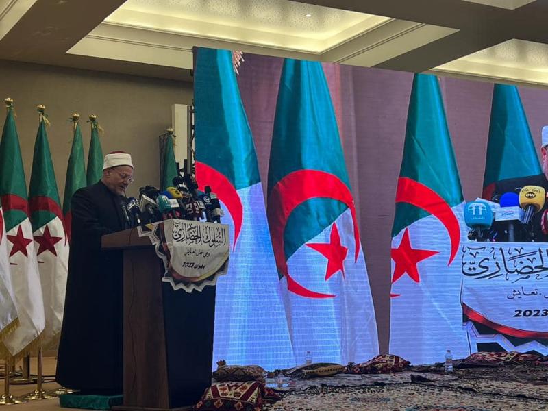 جاء ذلك في كلمته التي ألقاها باسم الضيوف خلال فعاليات المؤتمر الدولي الذي ينظمه المجلس الإسلامي الأعلى بالجزائر في مدينة "وهران" تحت رعاية الرئيس الجزائري عبد المجيد تبون في الفترة من ٢٥ إلى ٢٧ فبراير الجاري، بعنوان "السلوك الحضاري.. وعي، فعل وتعايش".