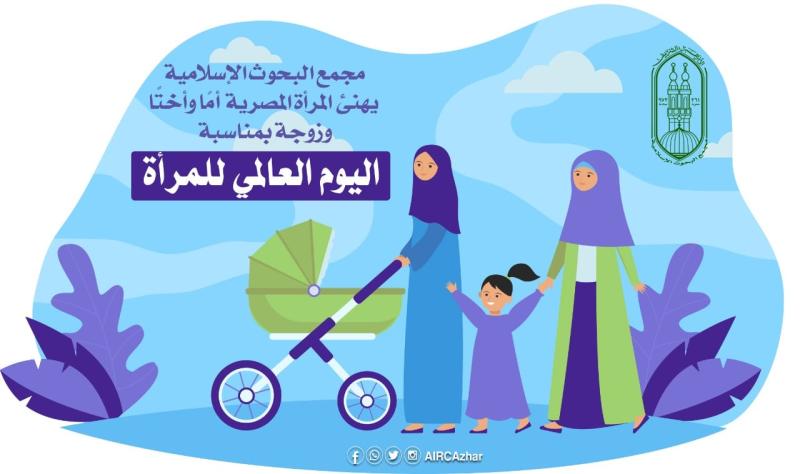 وجّه مجمع البحوث الإسلامية بالأزهر الشريف تهنئة للمرأة المصرية أمًا وأختًا وزوجة بمناسبة اليوم العالمي للمرأة؛ مؤكدًا دورها الفعّال في المجتمع فهي شريك أساسي في بنائه وتنميته؛ حيث يقع عليها الدور الأكبر في المحافظة على الثوابت من خلال تربية وإعداد جيل من الشباب قادر على مواجهة التحديات والوقوف أمام الصعاب.