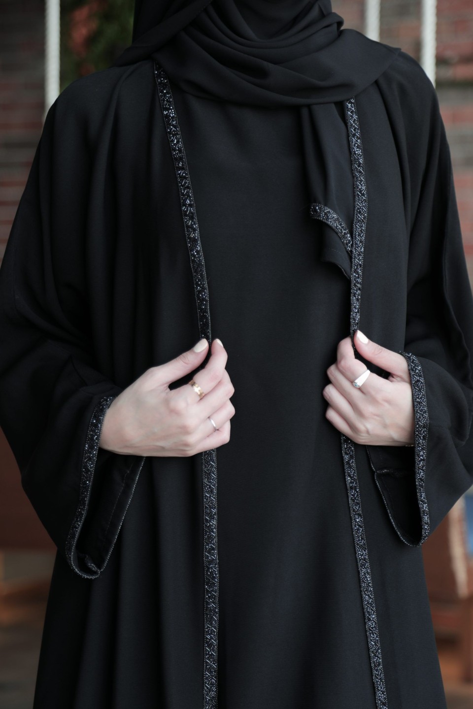 عادة ما يتم تزيين العبايات بالخرز بأعمال مطرزة معقدة على خط العنق والأكمام، مما يمنحها لمسة من الأناقة.