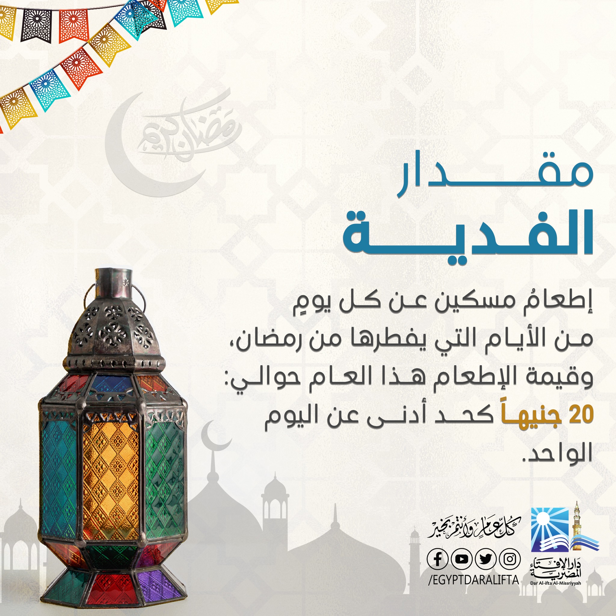 فدية الصوم لمن لا يستطيع الصوم نهائيًا الحد الأدنى 20 جنيهًا عن اليوم الواحد