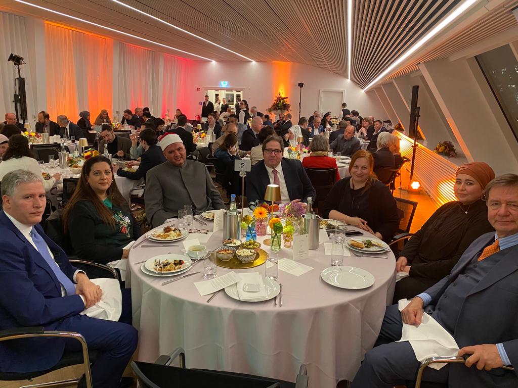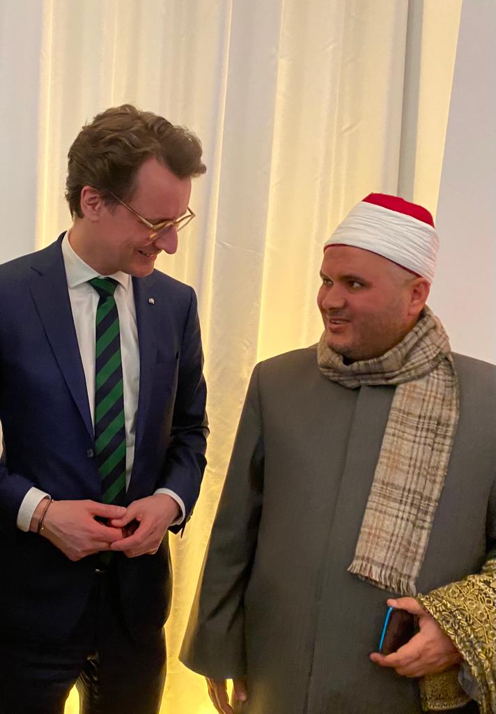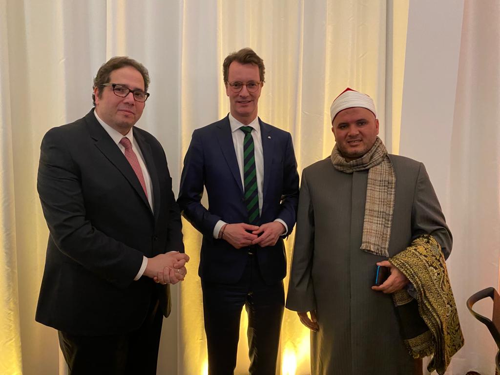 في جو مفعم بأجواء المحبة والود نظم رئيس الحكومة بولاية نور دراين فستفالين بألمانيا مائدة إفطار جماعية بحضور القارئ الشيخ/ نادي فوزي علي سعداوي أحد سفراء دولة التلاوة المصرية وموفد وزارة الأوقاف إلى دولة ألمانيا، والسيد/ عبد الصمد اليزيدي أمين عام المجلس الأعلى للمسلمين بألمانيا، وعدد من الشخصيات العربية والإسلامية، وخلال الإفطار التقى رئيس حكومة الولاية موفد الأوقاف مرحبًا به مشيدًا بدور جمهورية مصر العربية في نشر الفكر الوسطي، وذلك بما يؤكد الدور الديني والوطني العام الذي يقوم به سفراء دولة التلاوة المصرية كأحد أدوات القوة الناعمة للدولة المصرية ودعائم ريادتها في خدمة القرآن الكريم ونشر الفكر الوسطي.