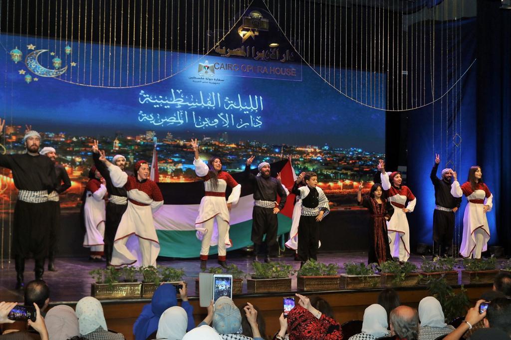 وعلى المسرح الصغير أقيمت بالتعاون مع سفارة فلسطين بالقاهرة أمسية ألقت الضوء على جانب من التراث العربى الثري تضمنت نماذج من الأغاني الفلكلورية والقصائد والأهازيج التراثية والوطنية، كان منها عباد الشمس، طاحت الخيل، مريت بالشوارع، ميل على بلدي، يا فلسطينية، مدينة الجروح، يا مزينة، وطني يعلمني، ولا في قلبي ولا عينيا، يا ماريا، ستي يا ستوت، أرضي عم بتقاسي، يا دنيا سمعانا، كما قدمت فرقة كنعان للثقافة والفنون بالزي التقليدي عدد من تابلوهات رقصة الدبكة الشهيرة.