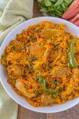 أضيفي قطع الدجاج المتبل إلى نفس الصينية، اشويها في الفرن على نفس الحرارة حتى تنضج تماماً من الجانبين.