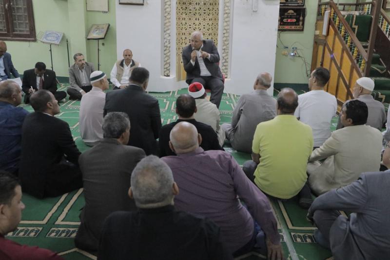 محافظ الوادي الجديد يلتقي المواطنين بمسجد الصالحين بالخارجة