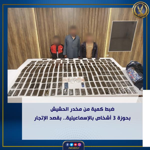 ضبط كمية من مخدر الحشيش بحوزة 3 اشخاص بالاسماعيلية