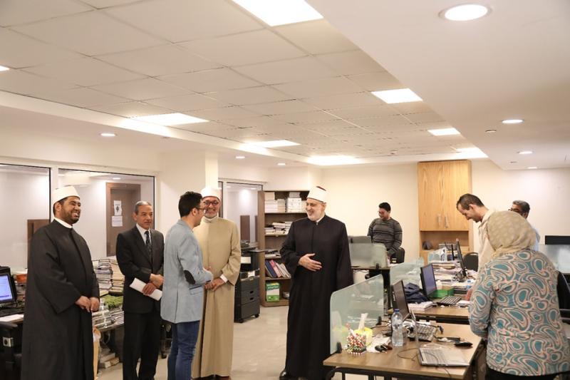 أجرى وكيل الأزهر الدكتور محمد الضويني جولة تفقدية بمجمع البحوث الإسلامية؛ رافقه فيها: د. نظير عياد الأمين العام لمجمع البحوث الإسلامية، د. محمود الهواري الأمين المساعد للدعوة والإعلام الديني، د. حسن خليل الأمين المساعد للثقافة الإسلامية؛ حيث ناقش وكيل الأزهر خلال الجولة مع العاملين طبيعة تقسيم العمل اليومي داخل كل إدارة والتحديات التي يمكن أن تواجههم أثناء أعمالهم.